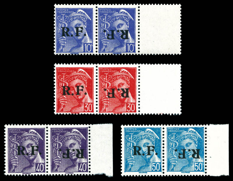 2539 imageSALON DE PROVENCE: Série Mercure, surcharge renversée tenant à normale en paires bdf. SUPERBE. R.R. (signés Calves/certificat) Qualité: ** Cote: 2880 euros (Image)