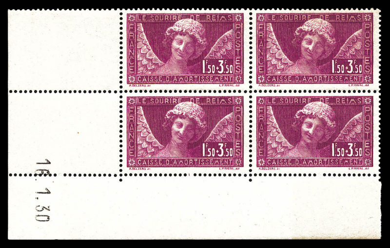 2586 imageN°256, Sourire de Reims, bloc de quatre cdf daté du 22.1.1930 (1ex*). TB Qualité: ** Cote: 666 euros (Image)