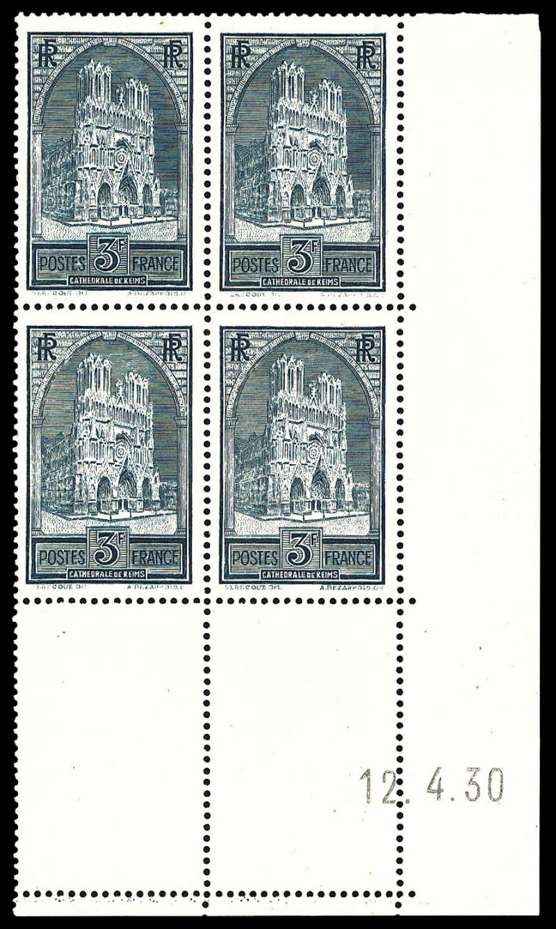 2588 imageN°259, Cathédrale de Reims type I, bd4 (1ex*), coin de feuille daté du 12.4.30. TB Qualité: ** Cote: 562 euros (Image)