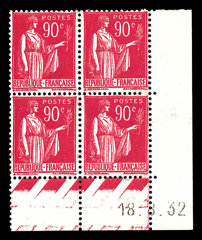 2599 imageN°285, 90c Paix en bloc de quatre cdf daté de 1932. SUP Qualité: ** Cote: 375 euros (Image)