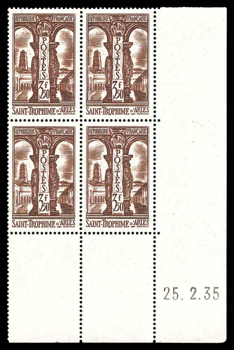 2603 imageN°302, St Trophime, 3F50 brun en bloc de quatre coin de feuille daté du 6/3/35, TB Qualité: ** Cote: 450 euros (Image)