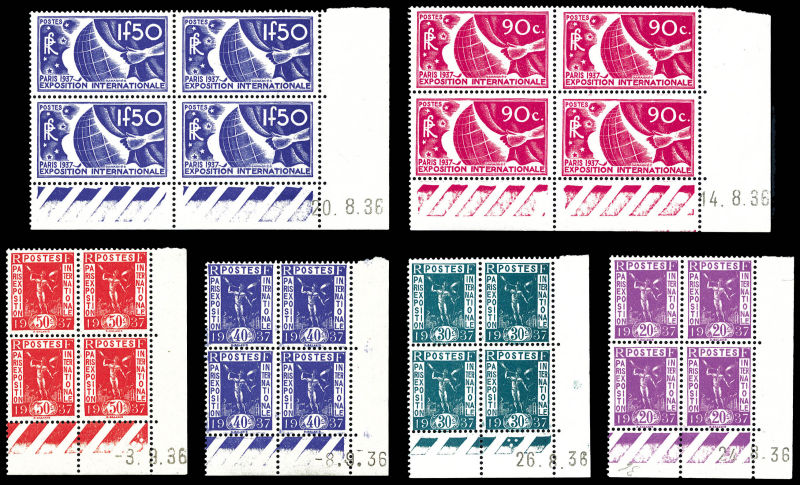 2605 imageN°322/327, Série expo de Paris 1936 en blocs de quatre. TB Qualité: ** Cote: 626 euros (Image)