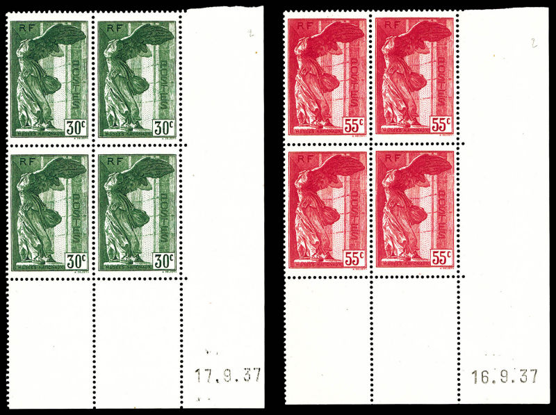 2606 imageN°354/355, Paire Samothrace: 2 blocs de quatre cdf datés de 1937. TB (certificat) Qualité: ** Cote: 2100 euros (Image)