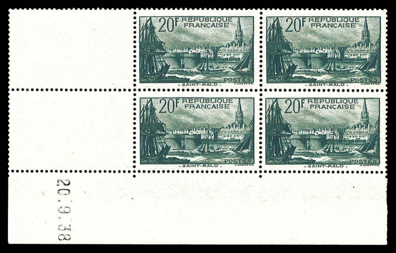 2607 imageN°394, Port de St Malo, bloc de quatre cdf daté du 20.9.38, TB Qualité: ** Cote: 500 euros (Image)