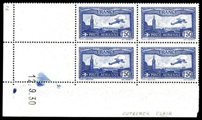 2610 imageN°6b, 1F50 outremer-vif en bloc de quatre coin de feuille daté du 12/9/1930, SUPERBE (certificat) Qualité: ** Cote: 4000 euros (Image)