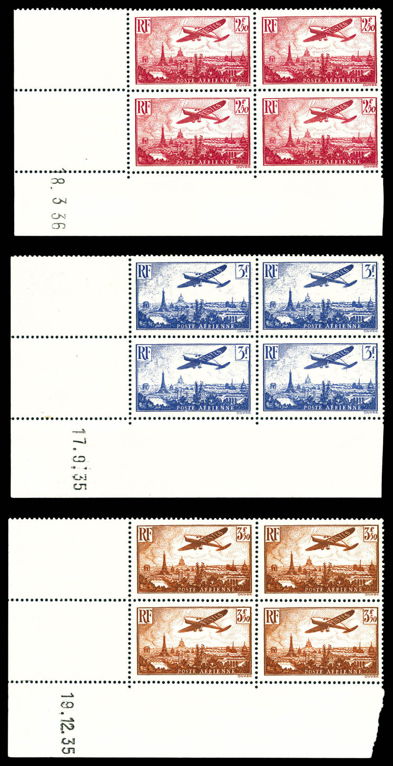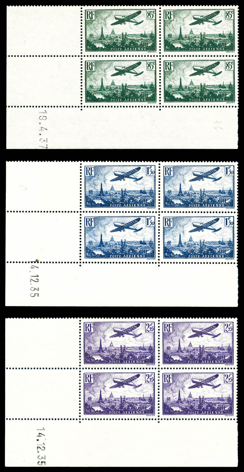 2612 imageN°8/13, Série avions survolant Paris, les six valeurs en bloc de quatre coins de feuilles datés, TB (certificat) Qualité: ** Cote: 1500 euros (Image) (image2) (All Images)