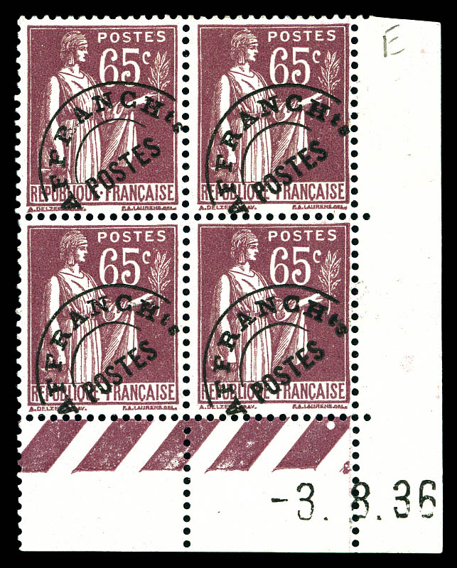 2615 imageN°73, 65c Paix en bloc de 4 cdf daté du 3.8.36 (1ex*). TTB Qualité: ** Cote: 900 euros (Image)