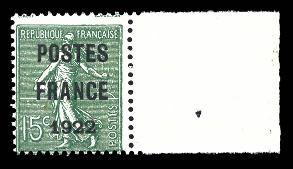 2632 imageN°37, 15c olive surchargé 'POSTES FRANCE 1922', bord de feuille, fraîcheur postale. SUPERBE. R.R. (Certificat) Qualité: ** Cote: 2400 euros (Image) (image2) (All Images)