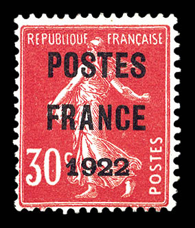 2636 imageN°38, 30c rouge surchargé 'POSTE France 1922', TTB (signé Scheller/certificat) Qualité: (*) Cote: 950 euros (Image) (image2) (All Images)