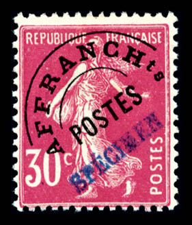 2645 imageN°59, 30c rose surchargé 'SPECIMEN' en bleu, R.R.R. (signé Scheller/certificat) Qualité: * (Image)