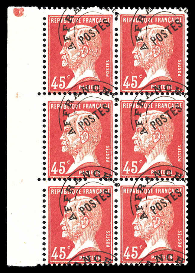 2650 imageN°67a, 45c rouge: Surcharge à cheval en bloc de 6 bdf. SUP. R. (certificat) Qualité: ** Cote: 1080 euros (Image)