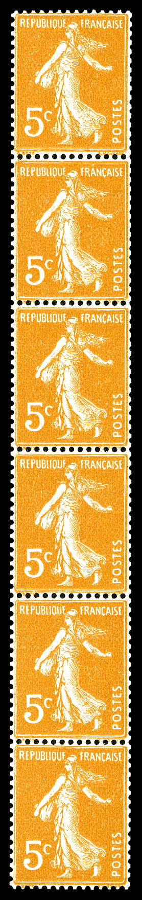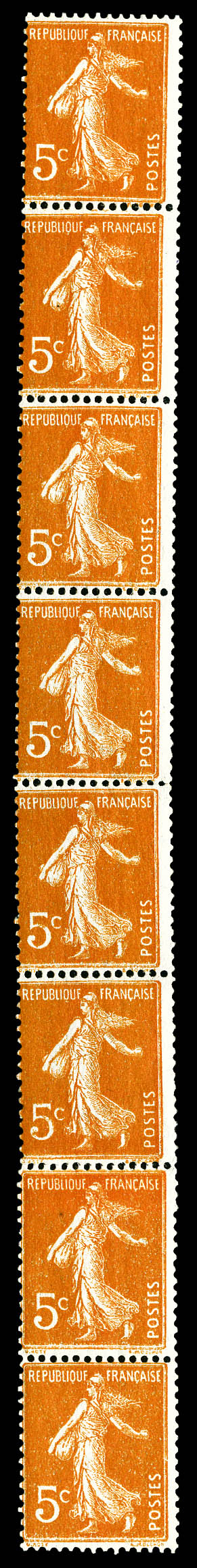 2658 imageN°8, 5c Semeuse orange, bande de six verticale (N°158c). TTB Qualité: ** Cote: 185 euros (Image)