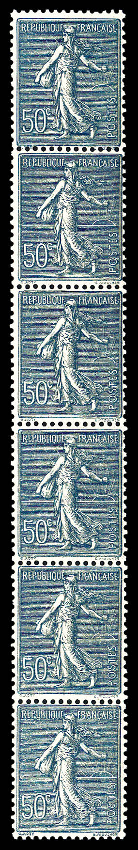 2657 imageN°7, 50c Semeuse lignée, bande verticale de six N°161. TTB Qualité: ** Cote: 525 euros (Image)