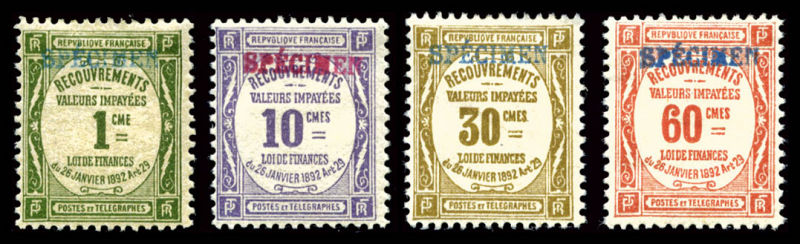 2681 imageSérie Recouvrement: les 4 valeurs surchargées 'SPECIMEN' en rouge et bleu, R.R.R. (signés Scheller/certificat) Qualité: * (Image)
