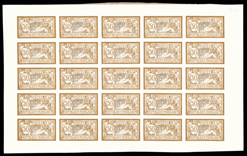2689 imageN°120a, Merson, 50c brun et gris non dentelé en feuille de 25 exemplaires (2ex*), fraîcheur postale, GRANDE RARETE. SUPERBE (certificat) Qualité: ** Cote: 24500+ euros (Image)