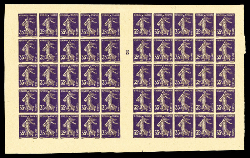 2692 imageN°142c, 35c Semeuse, en panneau complet de 50 exemplaires millésime '5'. SUP. R. (certificat) Qualité: (*) Cote: 3000 euros (Image)