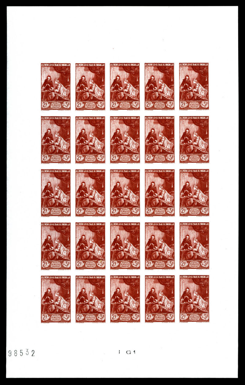 2696 imageN°753b, 2f +3f, Pour le musée Postal en feuille complète de 25 exemplaires, tirage 350ex. SUPERBE. R.R. (certificat) Qualité: ** Cote: 4375 euros (Image)