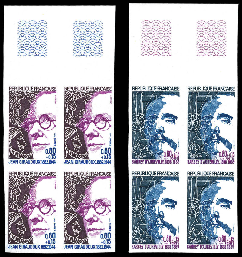 2700 imageN°1822/23, Paire Personnages célèbres de 1974 en blocs de 4 bdf. TB Qualité: ** Cote: 160 euros (Image)