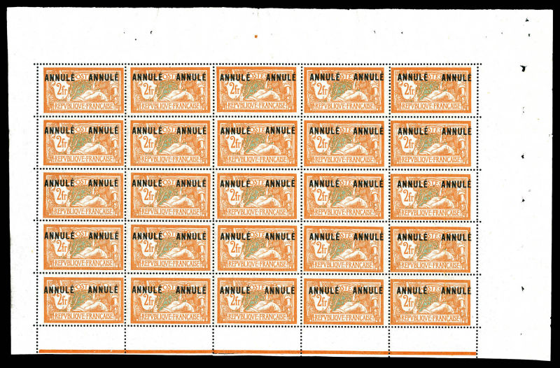 2731 imageN°145-CI 1, 2f Merson surchargé 'ANNULE' deux fois: panneau complet de 25 exemplaires encadré. SUP (certificat) Qualité: ** Cote: 6500 euros (Image)