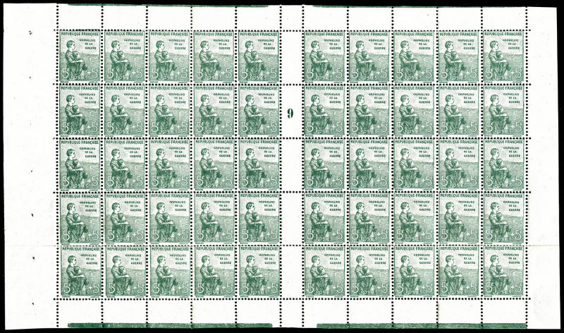 2733 imageN°149, Orphelins 5c +5c vert en panneau complet de 50 exemplaires millésime '9', R.R. SUP (certificat) Qualité: ** Cote: 4500 euros (Image)