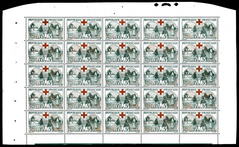 2734 imageN°156, Infirmière, 15c +5c noir et rouge, FEUILLE DE 25 EXEMPLAIRES, FRAICHEUR POSTALE, SUPERBE (certificat) Qualité: ** Cote: 7500 euros (Image)