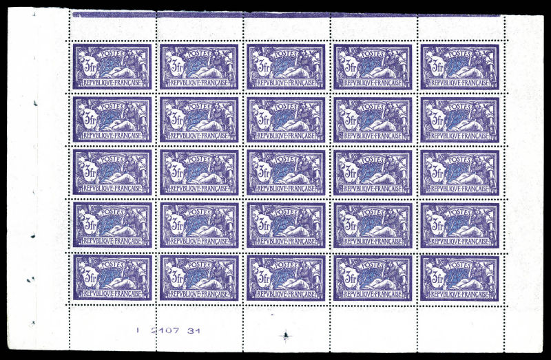2737 imageN°206, Merson 3f violet-foncé et bleu, panneau complet de 25 exemplaires avec numéro et croix de repère, fraîcheur postale. SUP (certificat) Qualité: ** Cote: 2250 euros (Image)