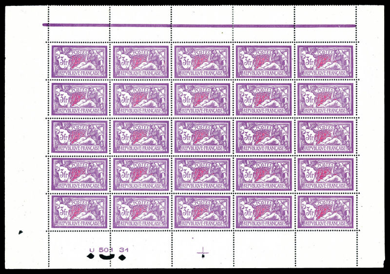 2741 imageN°240, 3F lilas et carmin en feuille de 25 exemplaires avec croix de repère et numéro, très bon centrage, fraîcheur postale, SUPERBE (certificat) Qualité: ** Cote: 6375 euros (Image)