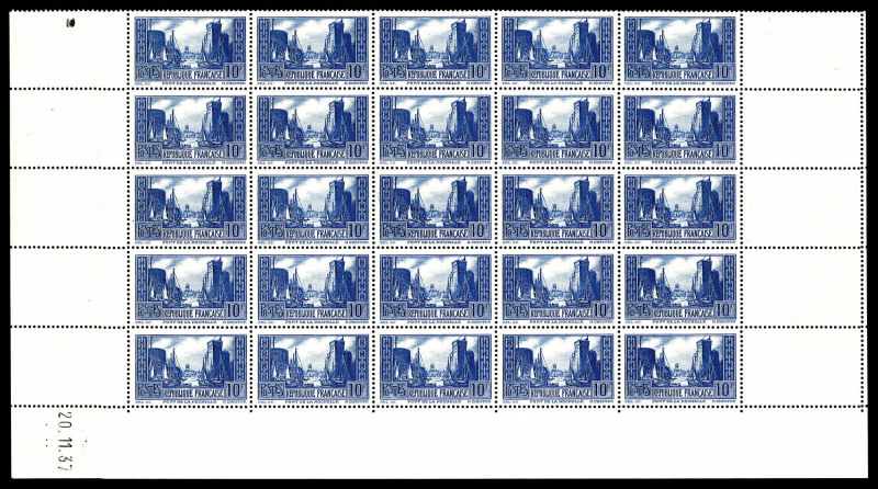 2743 imageN°261, Port de La Rochelle type III en panneau de 25 exemplaires daté du 20/11/1937, SUP (certificat) Qualité: ** Cote: 4250 euros (Image)