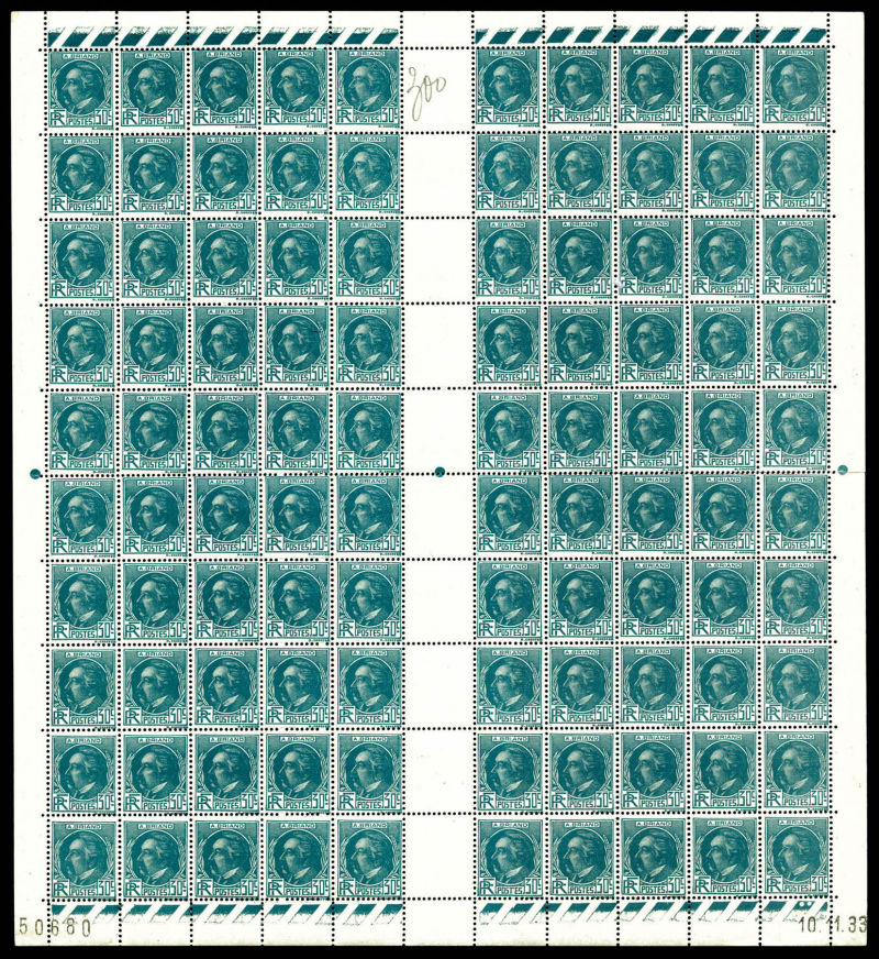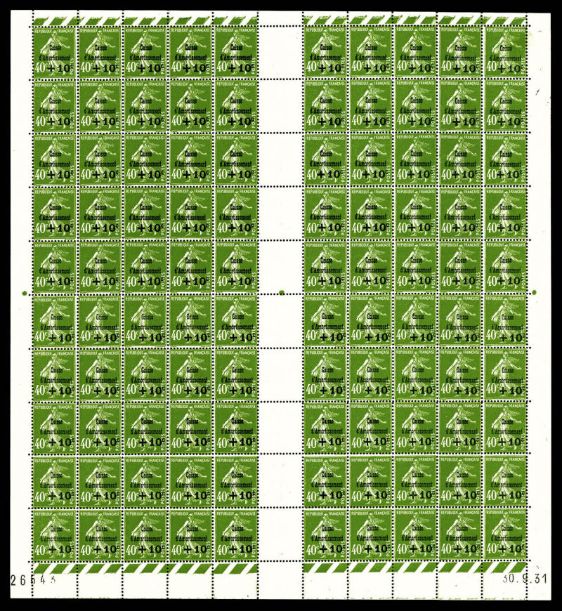 2747 imageN°275/a, Caisse d'Amortissement de 1931 en feuille complète de 100 ex dont variété 'Sans point sur le i de Caisse'. TTB (certificat) Qualité: ** Cote: 14110 euros (Image)