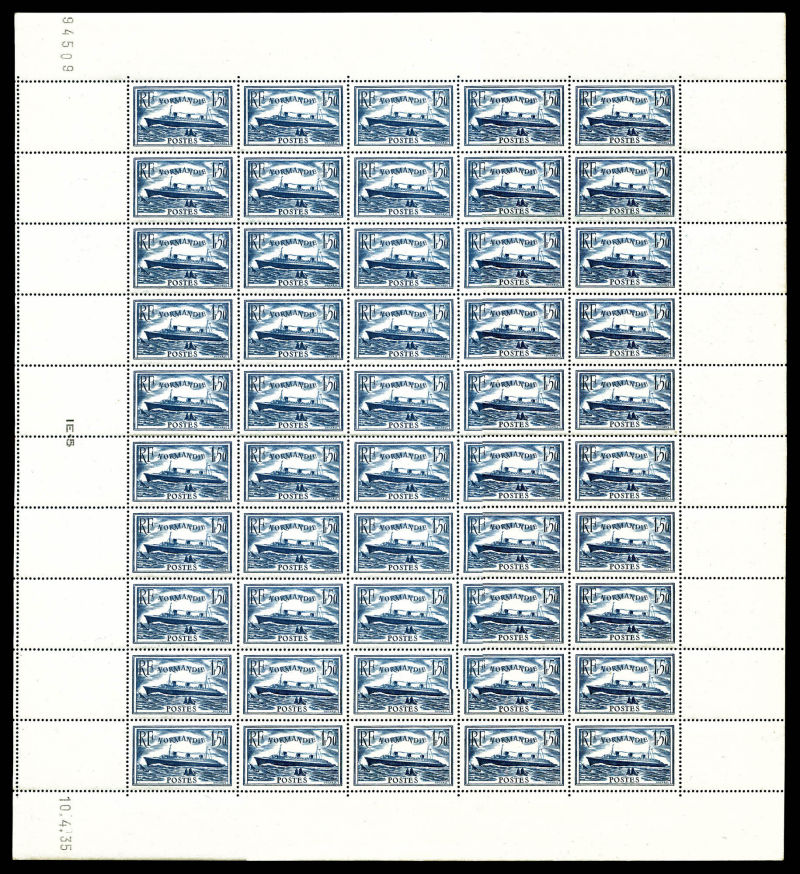 2750 imageN°299, 1f 50 Normandie en feuille complète de 50 exemplaires. SUP. R. (certificat) Qualité: ** Cote: 1900 euros (Image)