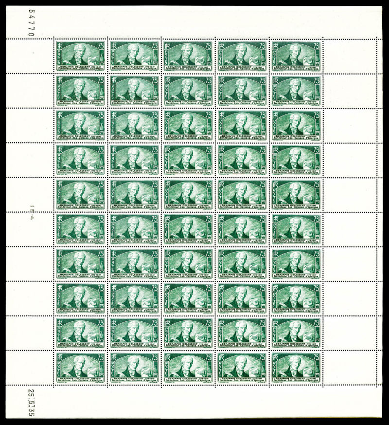 2751 imageN°303, 75c Benjamin Delessert en feuille complète de 50 exemplaires. SUP. R. (certificat) Qualité: ** Cote: 3250 euros (Image)