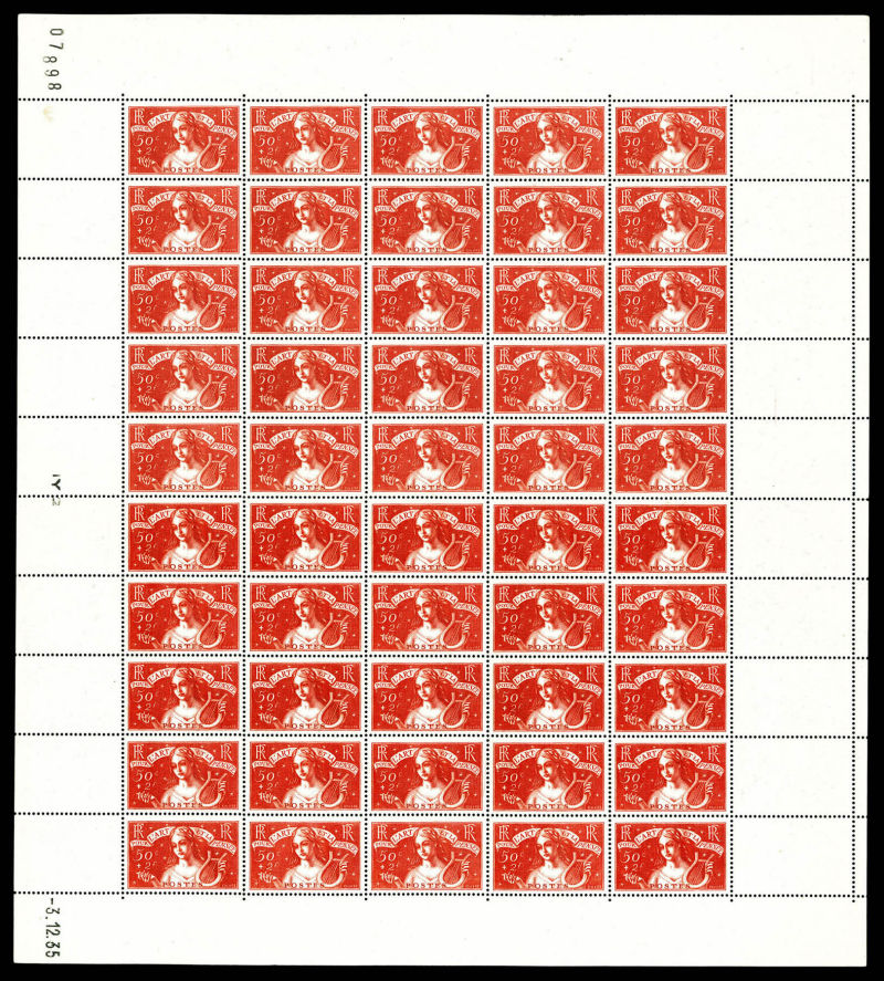 2753 imageN°308, Art et pensée en feuille complète de 50 exemplaires. SUP. R.R. (certificat) Qualité: ** Cote: 6750 euros (Image)