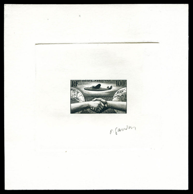 2894 imageNON EMIS: épreuve d'artiste AMITIE FRANCO-AMERICAINE 100F noir signée (Gandon), SUP (certificat) Qualité: (*) (Image)