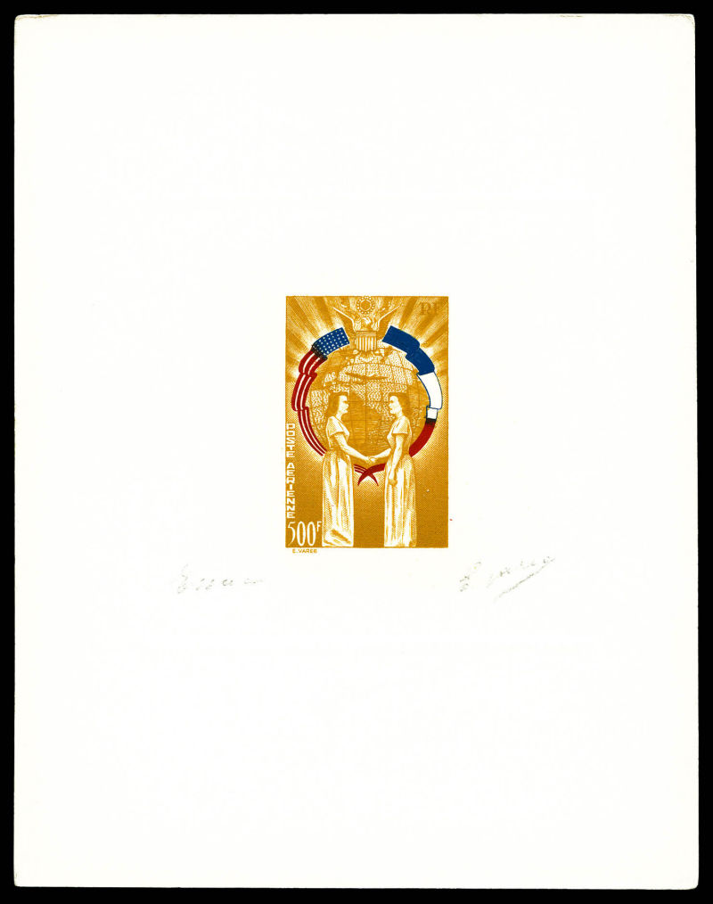 2895 imageNON EMIS: épreuve d'artiste AMITIE FRANCO-AMERICAINE 500F jaune-orange, signée du graveur, SUP (certificat) Qualité: (*) (Image)