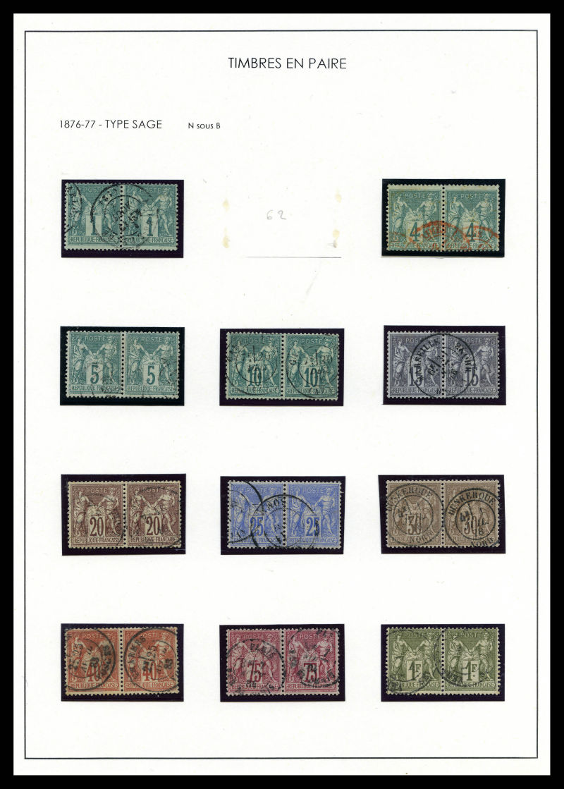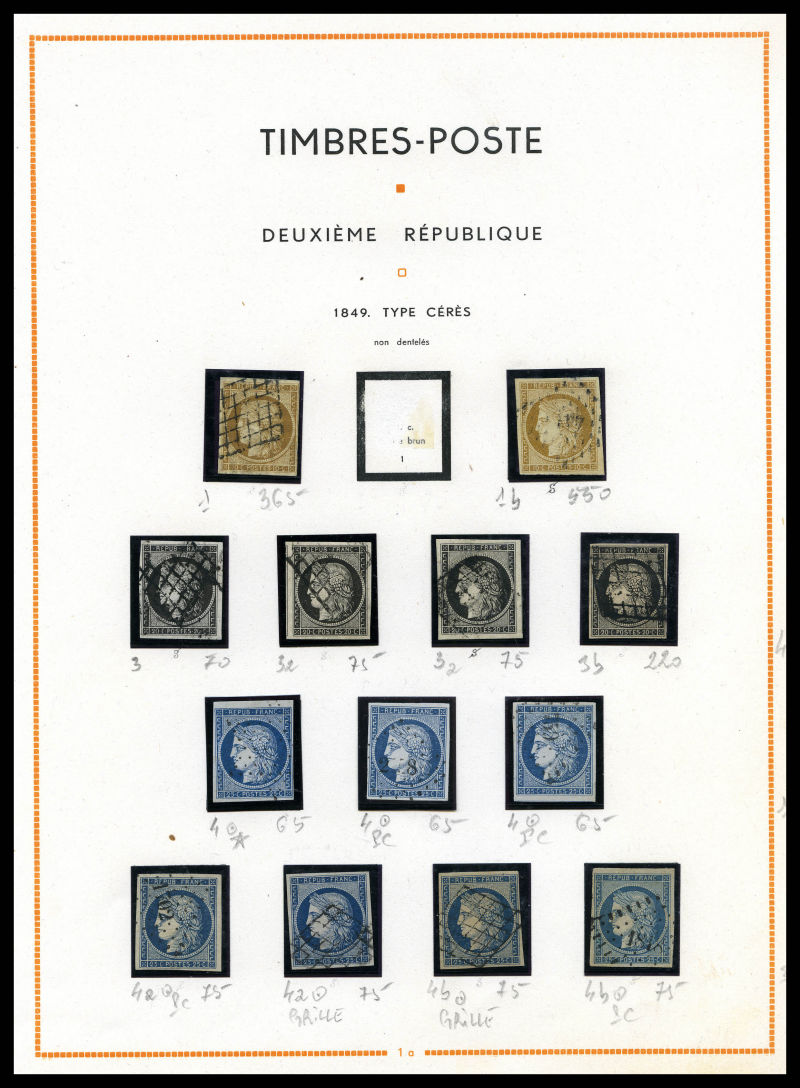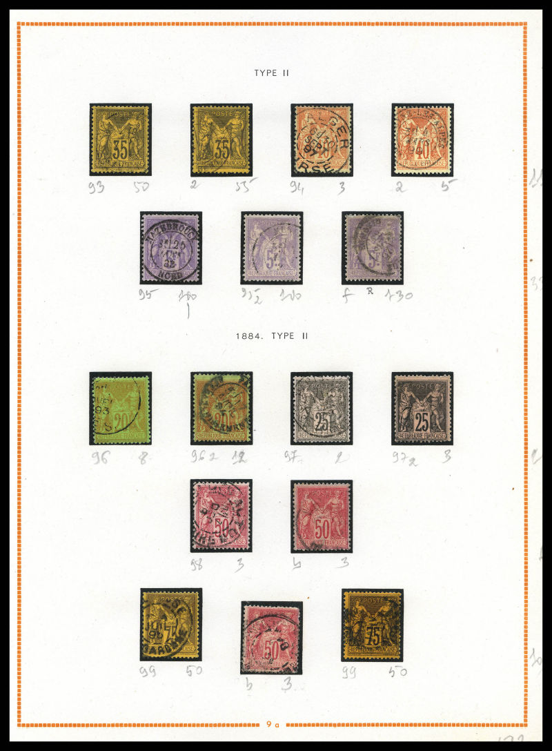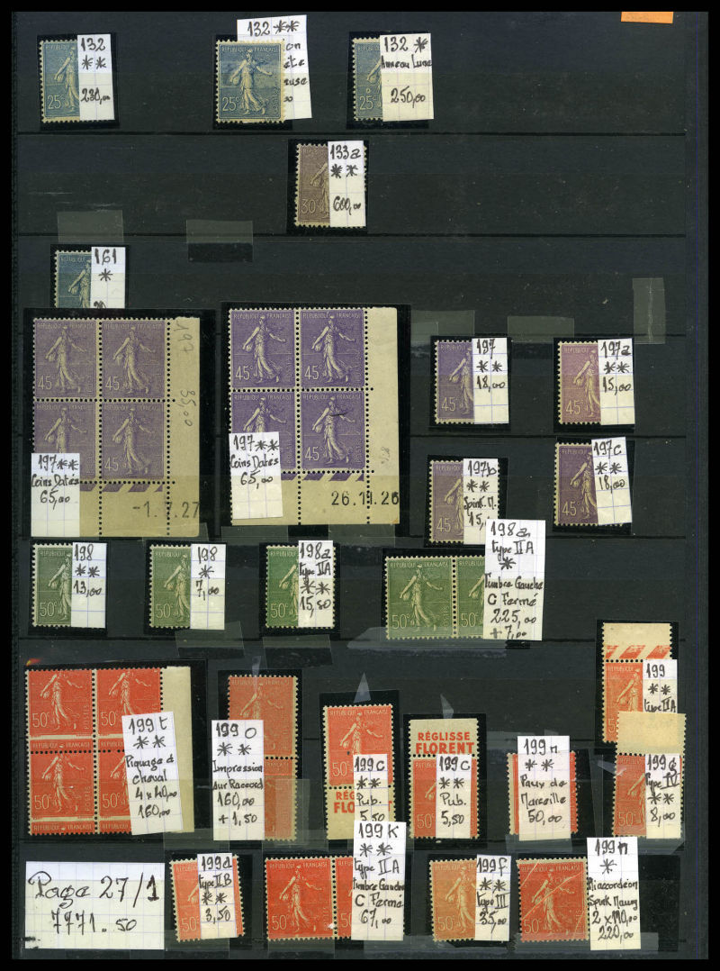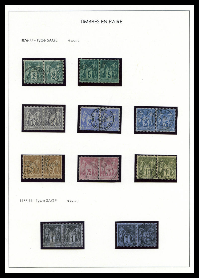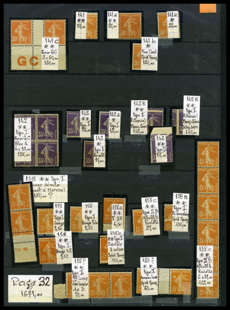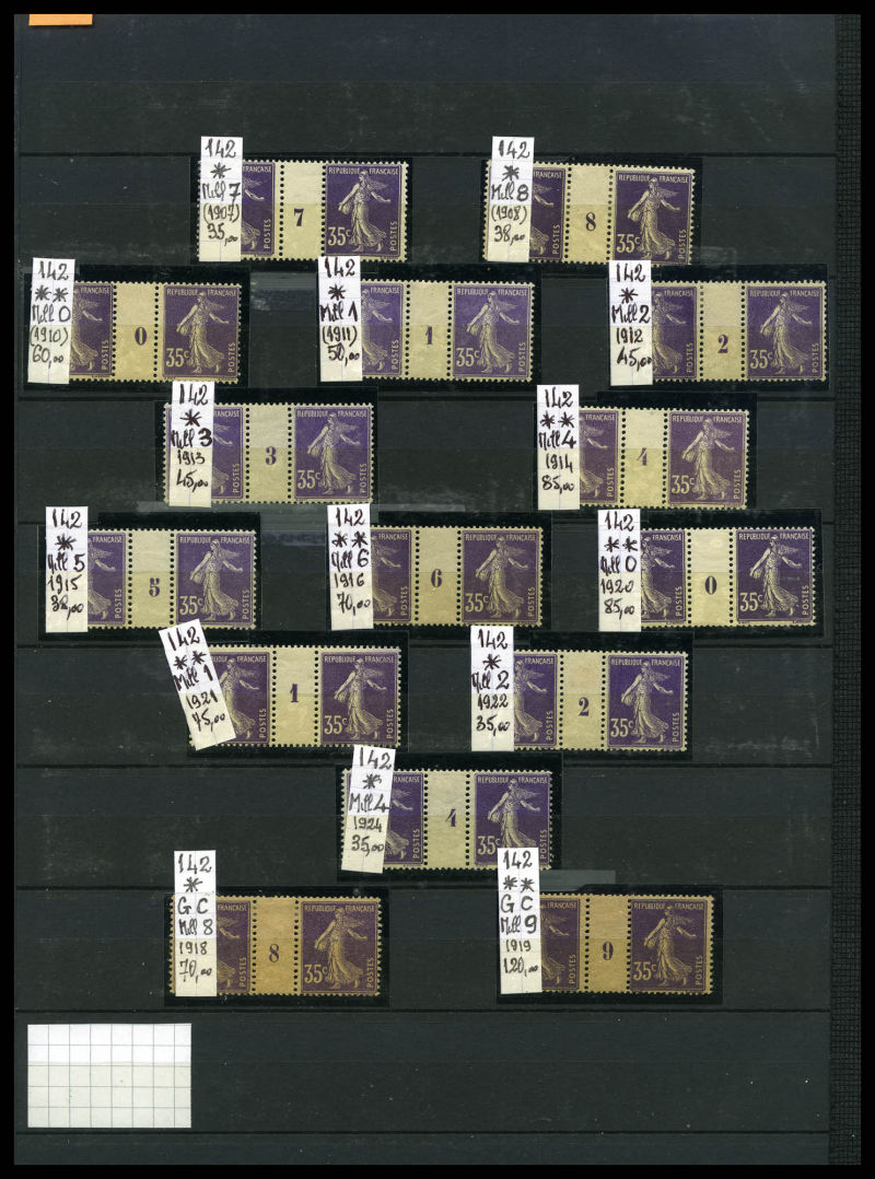 collection présentée en un gros classeur comprenant des timbres neufs et oblitérés dont oblitérations, nuances, paires, bandes, blocs, millésimes, roulettes, coins datés, nombreuses variétés dont plis accordéon, piquages, recto-verso, types,