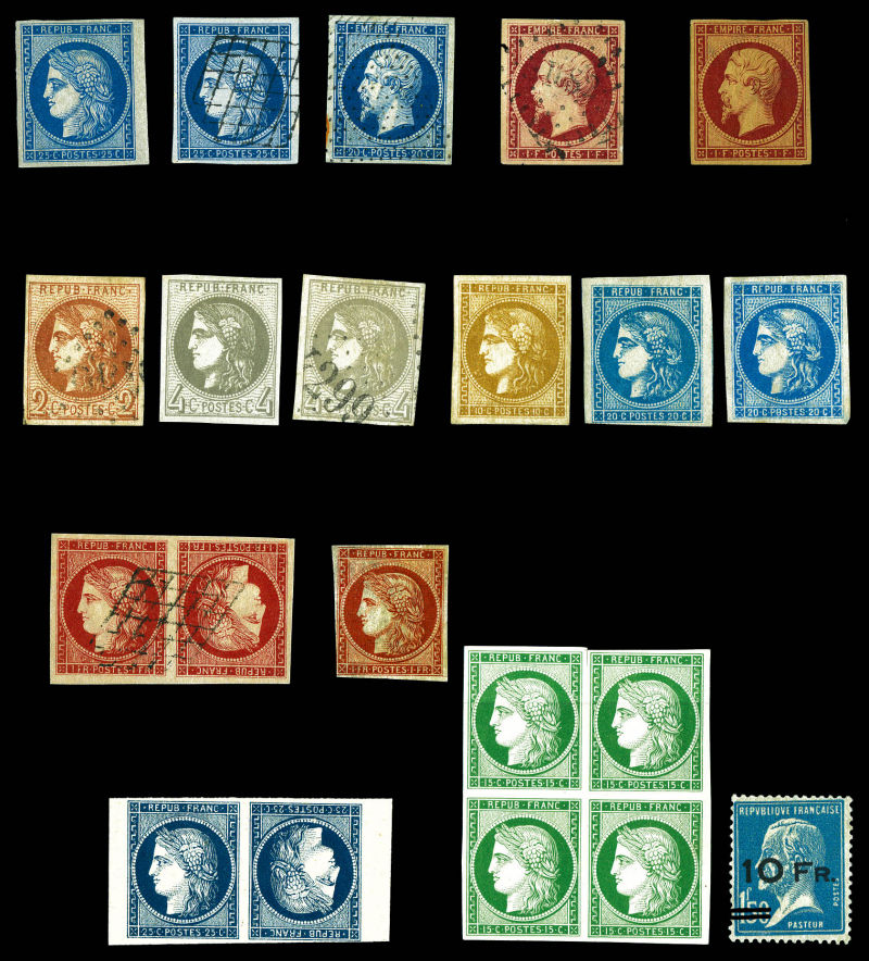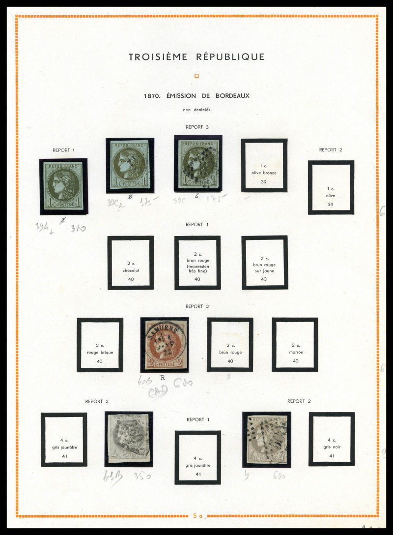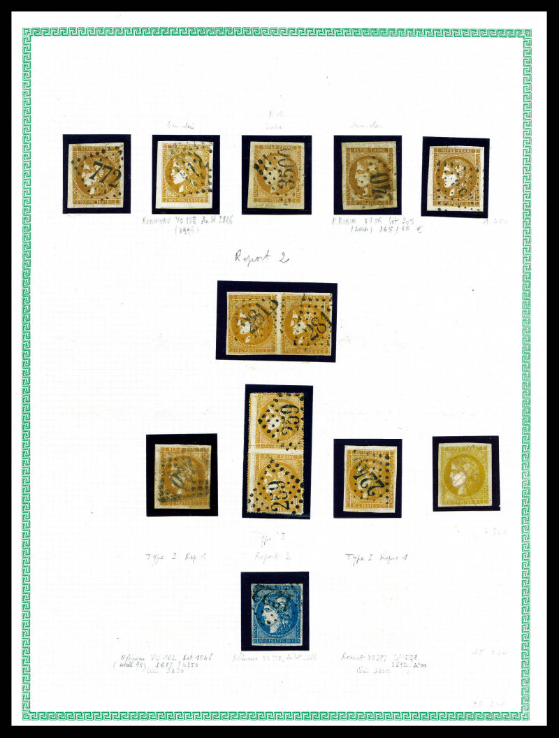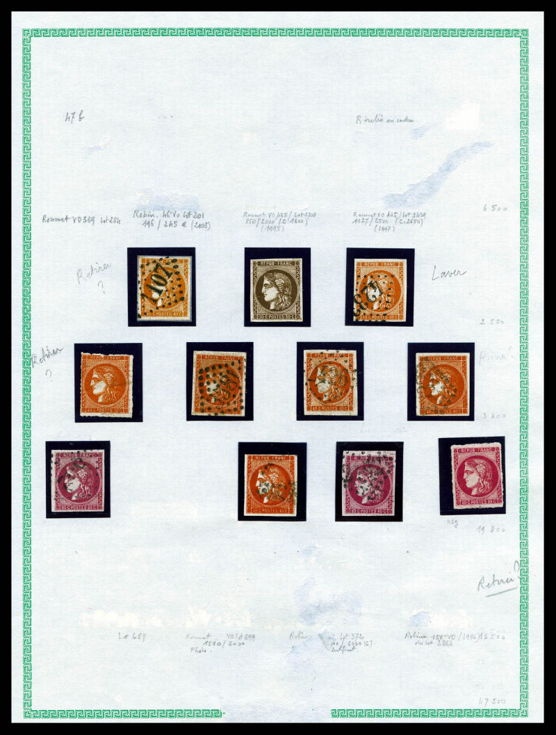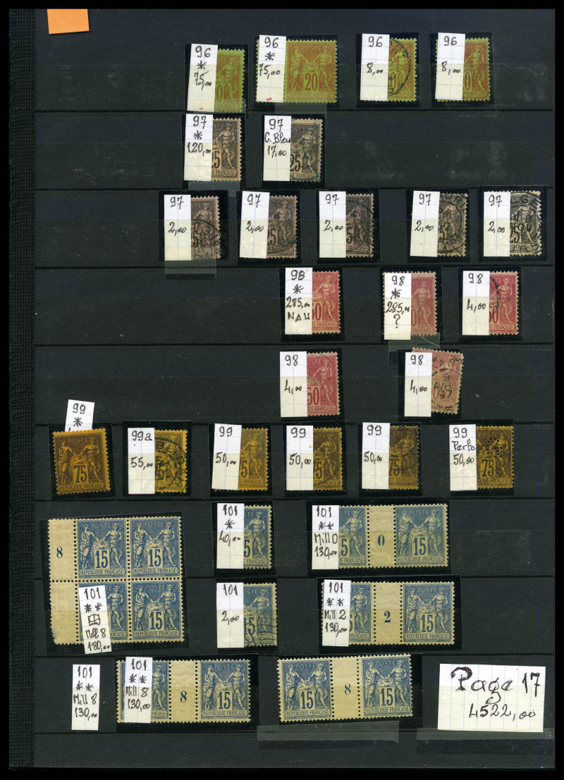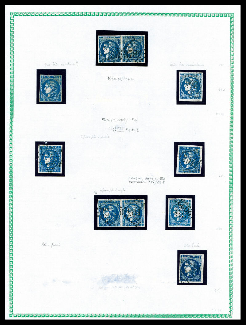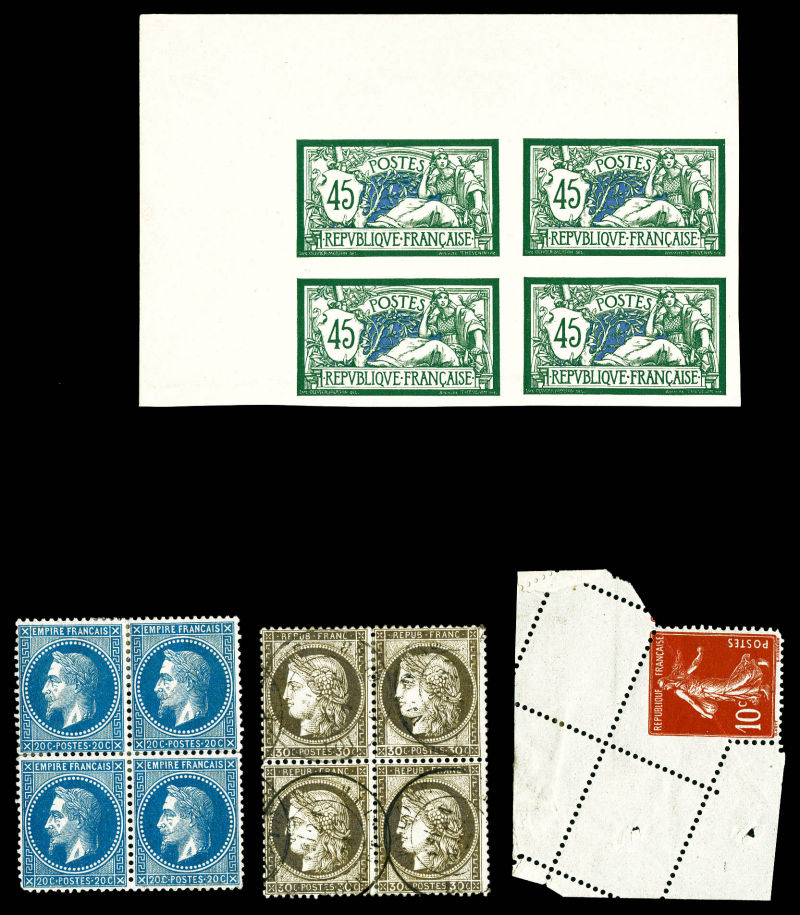 collection présentée en un gros classeur comprenant des timbres neufs et oblitérés dont oblitérations, nuances, paires, bandes, blocs, millésimes, roulettes, coins datés, nombreuses variétés dont plis accordéon, piquages, recto-verso, types,