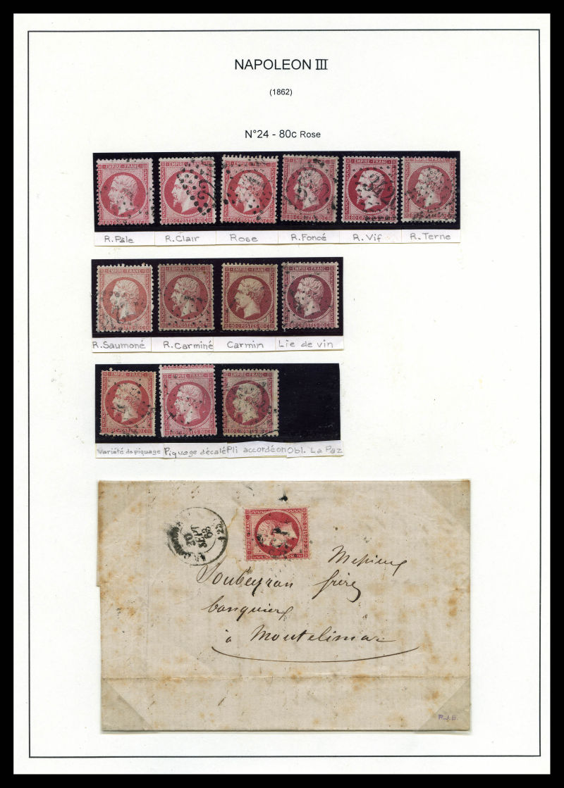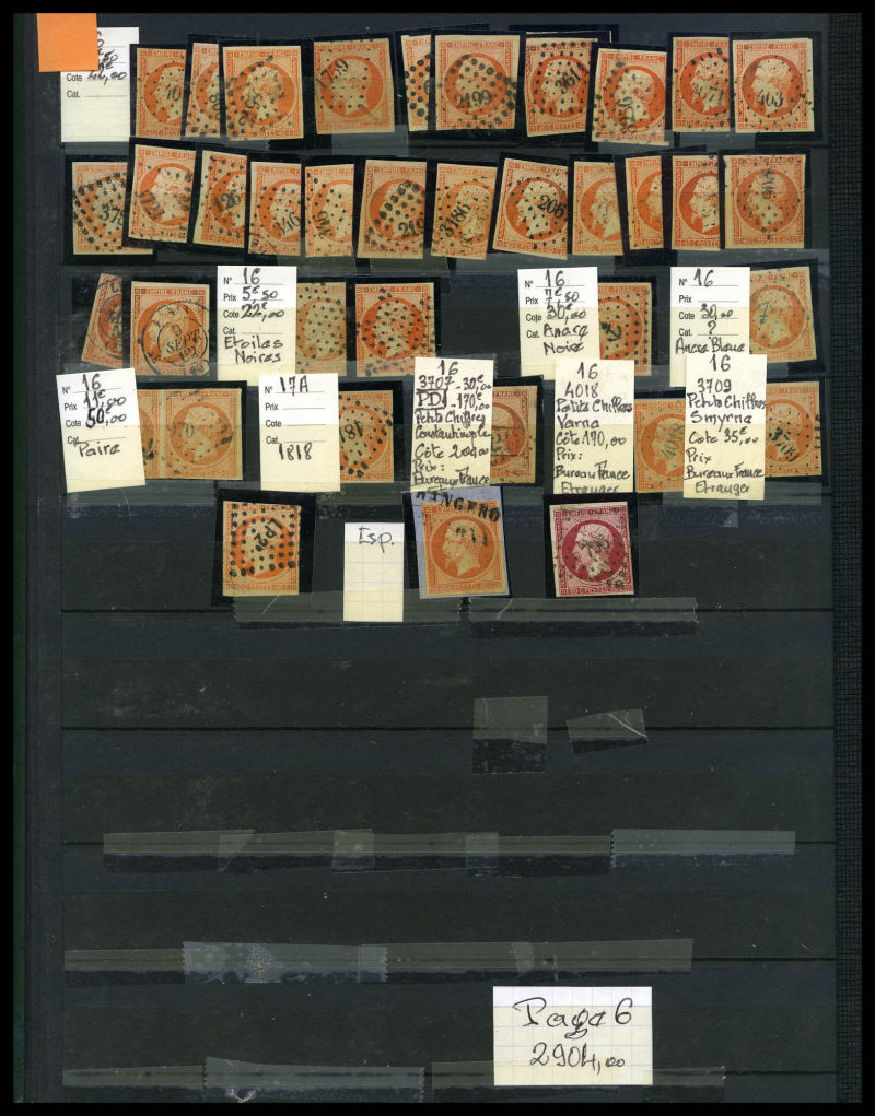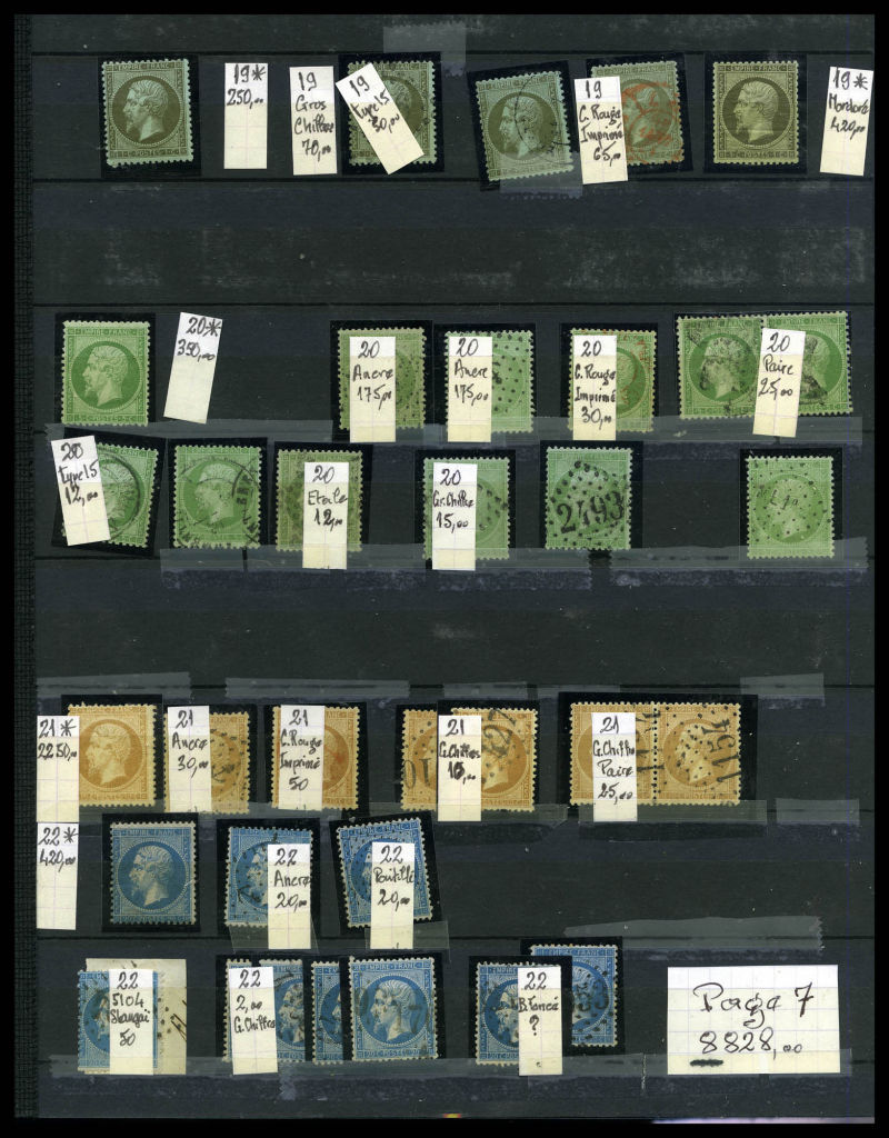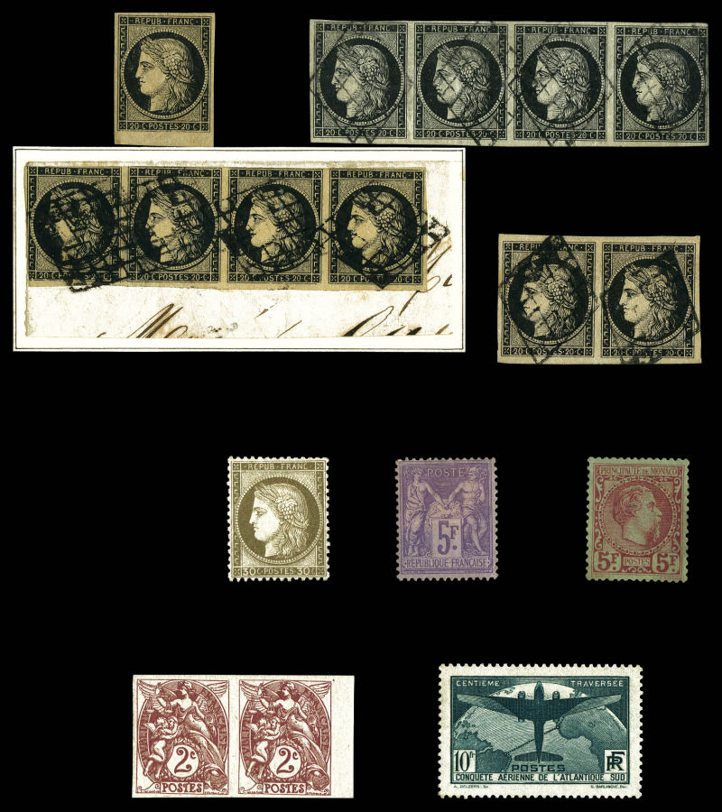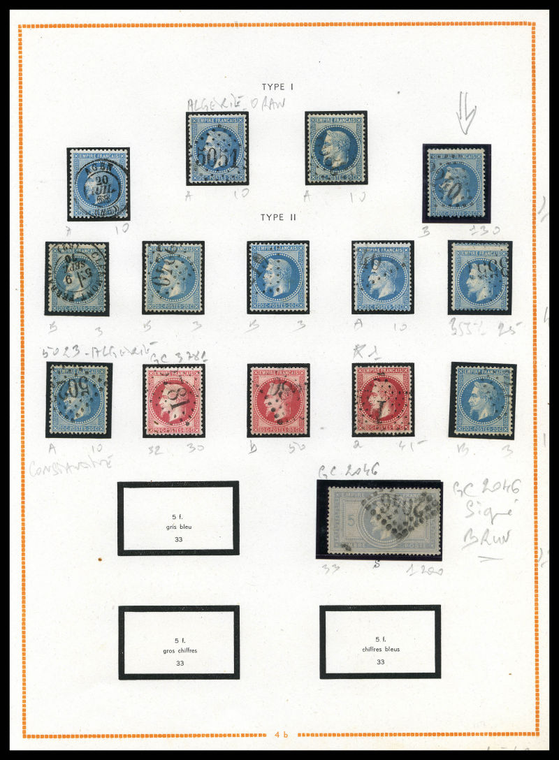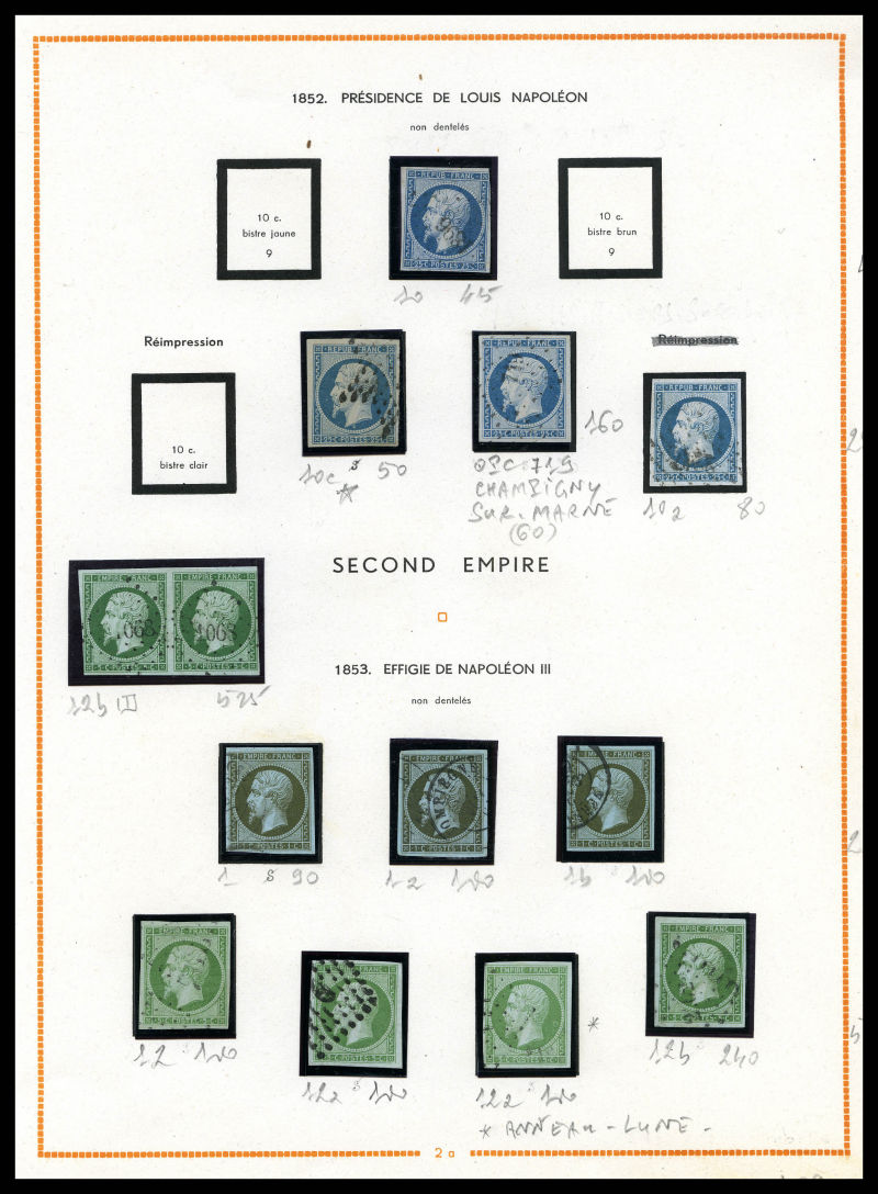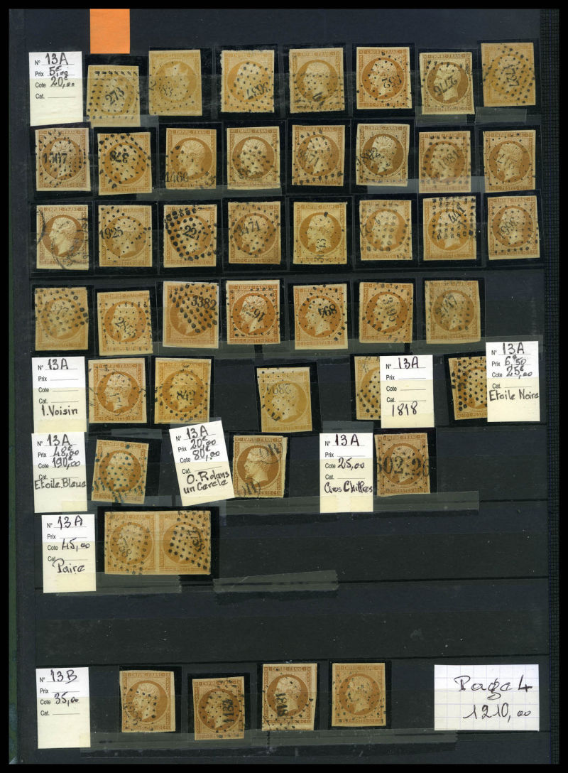 collection présentée en un gros classeur comprenant des timbres neufs et oblitérés dont oblitérations, nuances, paires, bandes, blocs, millésimes, roulettes, coins datés, nombreuses variétés dont plis accordéon, piquages, recto-verso, types,