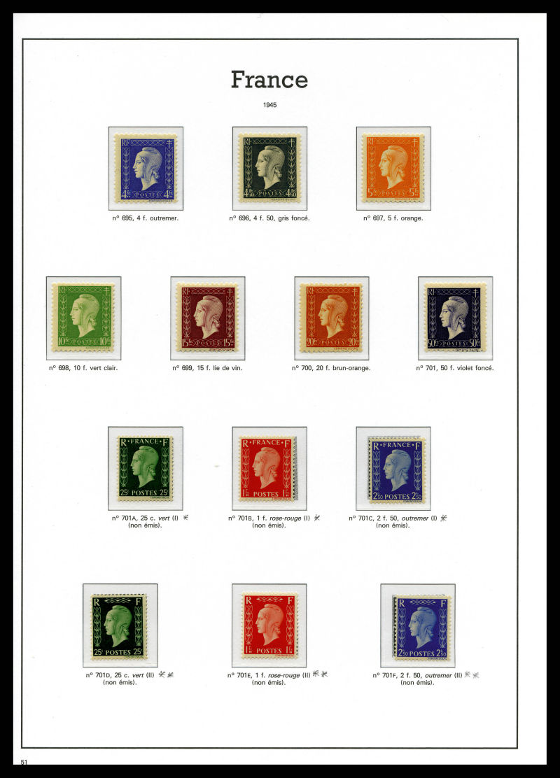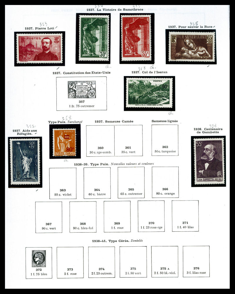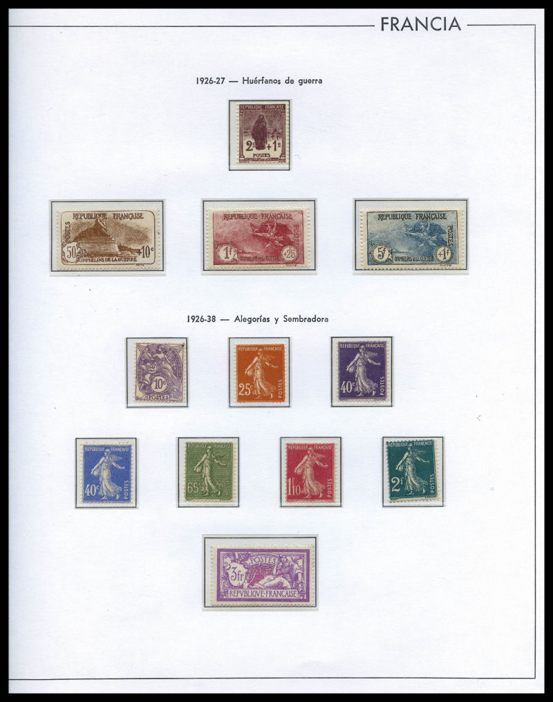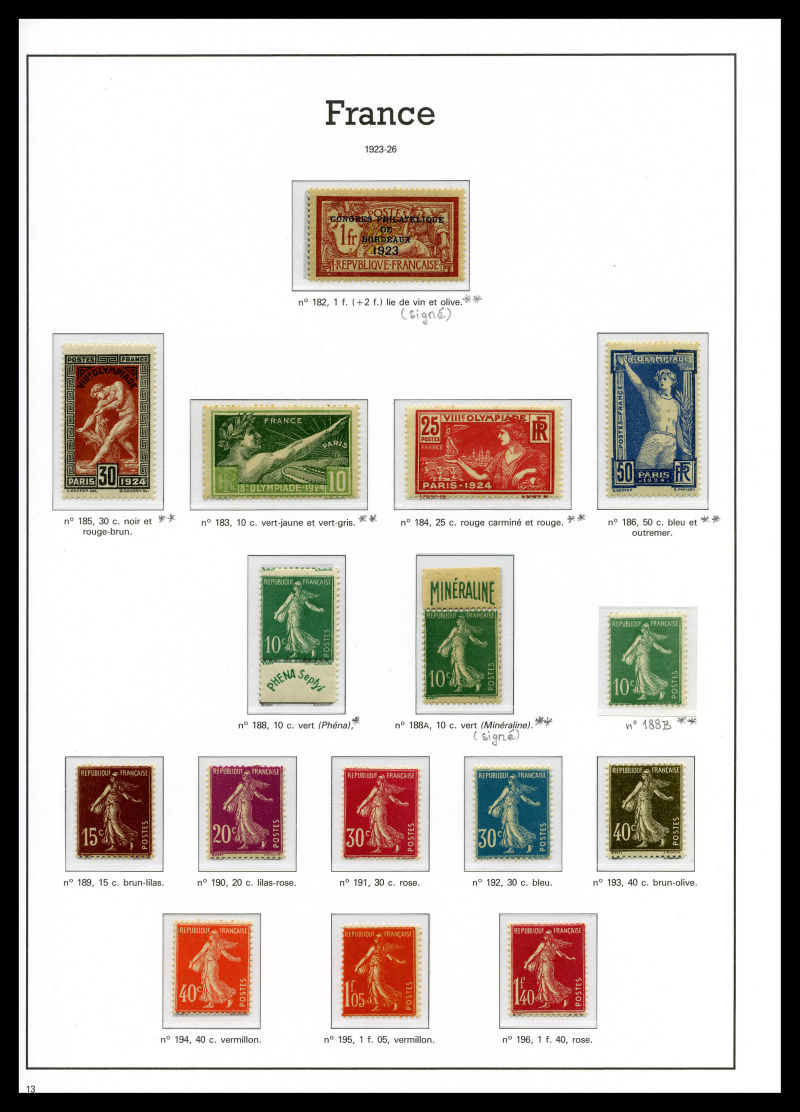 Collection de France en 13 albums Marini, neuf à partir de 1938, dont n°1 et 2 (signés A.Brun), 5, 6 (signé Calves), 9, 18 TTB (signé Calves), 33, Bordeaux, 1re série Orphelins obl. 2e et 3e série Orphelins neufs, 182 (signé Calves), Minéraline,