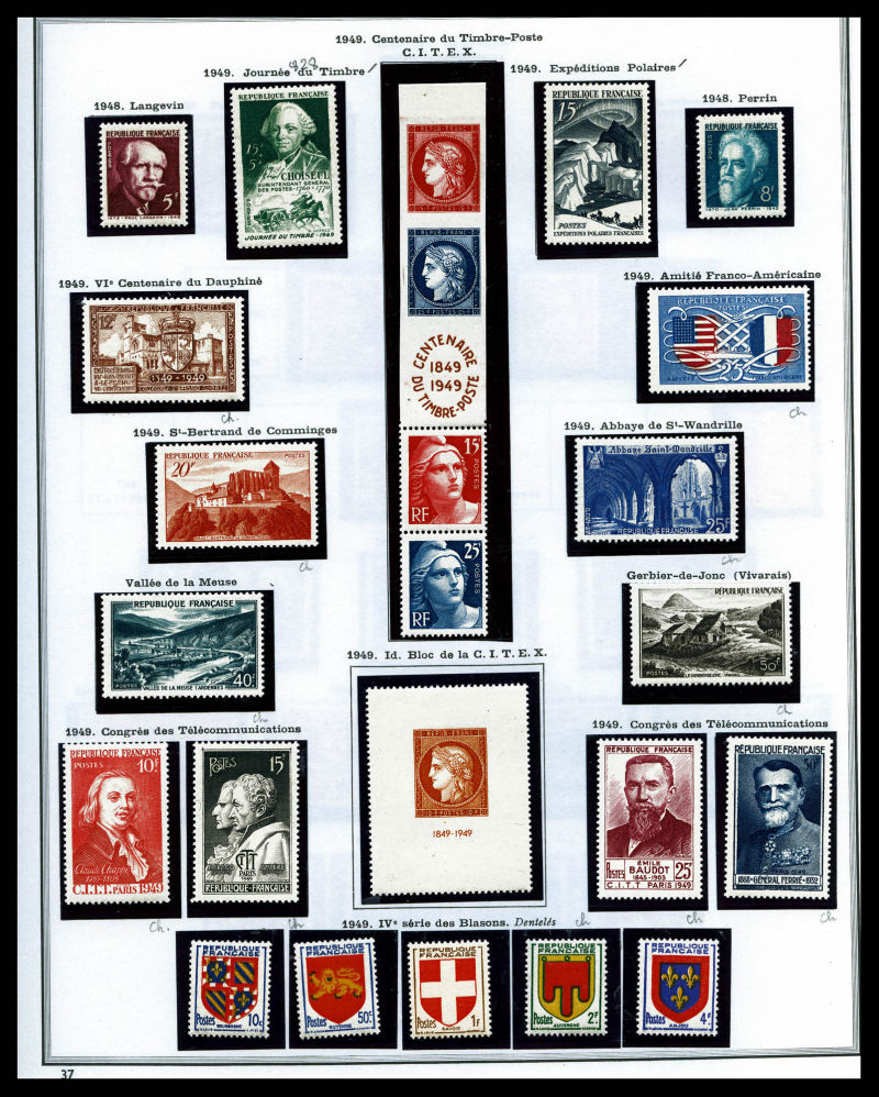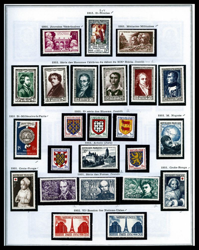 207/208, 216, Caisse d’amortissement, 257A obl., 262A, 321 neuf, 348/351 neufs, 701A/F, PA 1, 2, 14, 15 (tous obl.), BF 1, 2, 3, carnets Croix-Rouge dont 1952 et 1955. Collection de belle présentation. Qualité: N&Obl (Image) (image2)