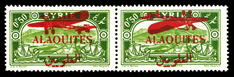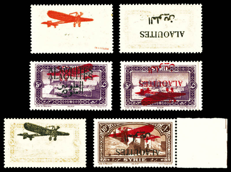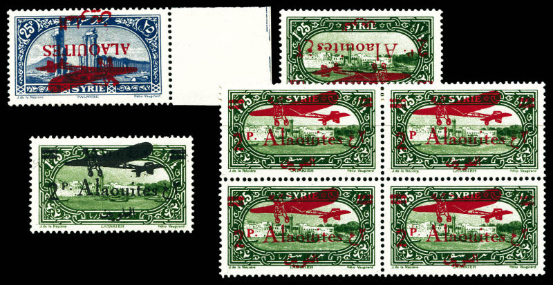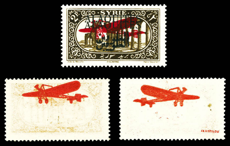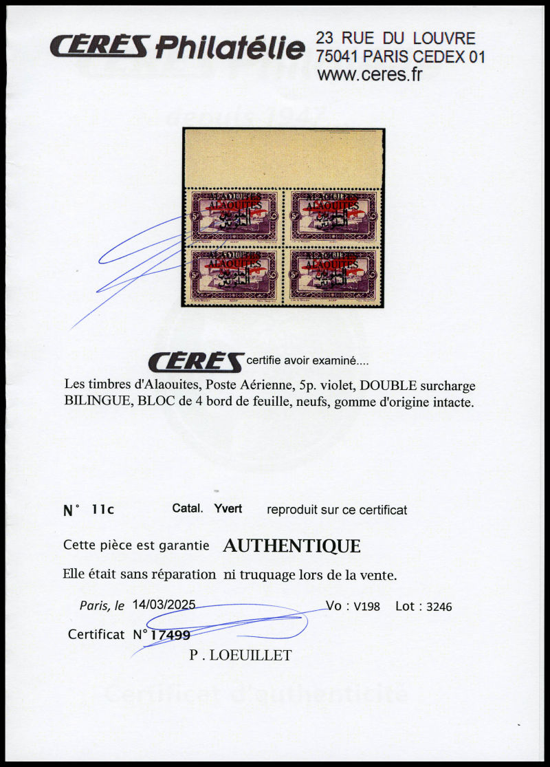 3107 imageN°9a, 9c et exemplaire surcharge ALAOUITE en rouge +surcharge de l'Avion recto-verso (non catalogué), SUP (certificat) Qualité: ** (Image)