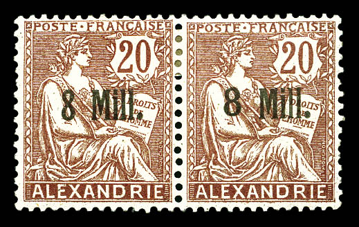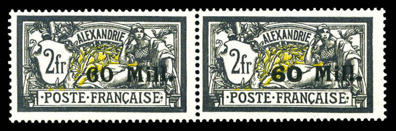 3121 imageN°48Aaa, 60 m sur 2f violet-noir, tirage du roi Fouad: type II tenant à normal (type I) en paire, fraîcheur postale. SUPERBE. R.R. (certificat) Qualité: * Cote: 4200 euros (Image)