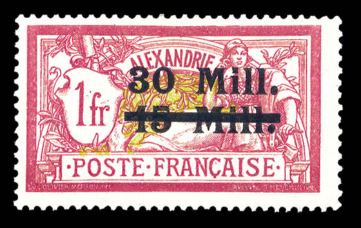 3124 imageN°50, Merson 1F surchargé 30m sur 15m, tirage 75 exemplaires, RARE et SUP (signé Champion/Calves/certificat) Qualité: * Cote: 1650 euros (Image) (image2) (All Images)
