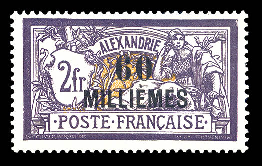 3125 imageN°59, 60m sur 2f violet et jaune, gomme partiellement jaunâtre, tirage 225 exemplaires. SUP. R. (signé Calves/Roumet/certificat) Qualité: ** Cote: 6300 euros (Image) (image2) (All Images)