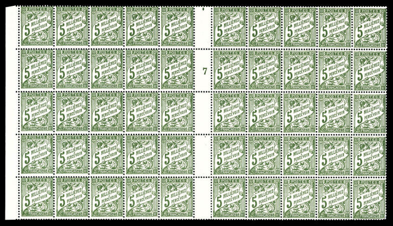 3127 imageN°9b, 5m olive: sans 'F' à Francaise tenant à normaux en panneau de 50 exemplaires. SUP Qualité: ** Cote: 372 euros (Image)