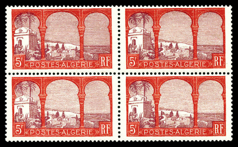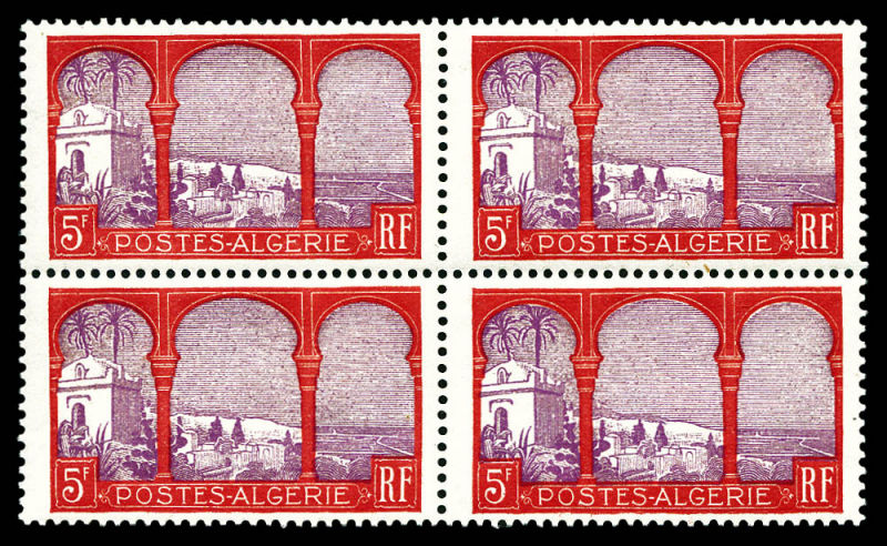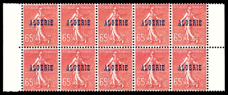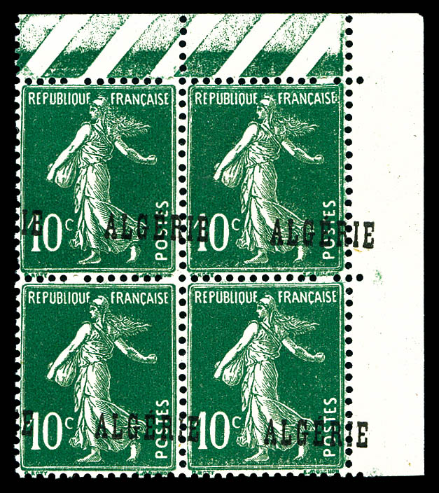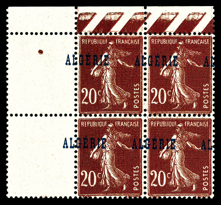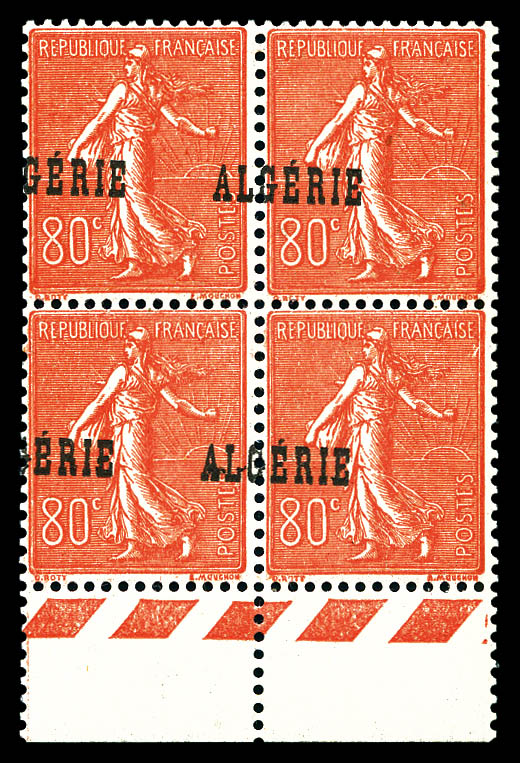 3136 imageN°27a, 80c Semeuse: Surcharge ALGERIE à cheval sur bloc de quatre. TTB (certificat) Qualité: ** Cote: 420 euros (Image)