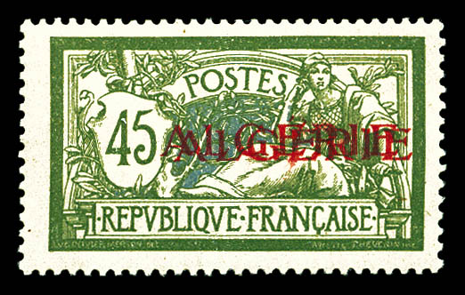 3132 imageN°21a, 45c Merson: Double surcharge ALGERIE. SUP. R. (signé Brun/certificat) Qualité: ** Cote: 790 euros (Image)