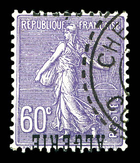 3133 imageN°24a, 60c Semeuse, surcharge renversée obl càd de Chevreuil, variété connue qu'à l'état oblitéré. SUPERBE. R.R. (signé Brun/certificat) Qualité: Oblitéré Cote: 4500 euros (Image) (image2) (All Images)