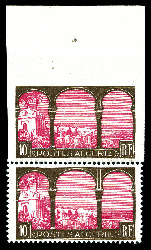 3150 imageN°84aa, 10f brun et rosé: Non dentelé tenant à normal. SUP. R.R.R. (signé Calves/certificat) Qualité: ** Cote: 11800 euros (Image)