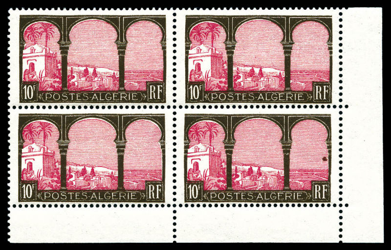 3151 imageN°84c, 10f brun et rosé: Arbre coupé tenant à normaux en bloc de quatre cdf. SUP. R. (certificat) Qualité: ** Cote: 1794 euros (Image)