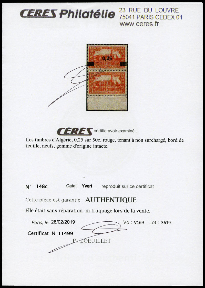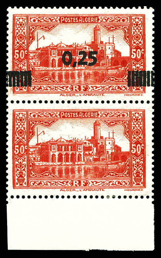 3159 imageN°148, 25c sur 50c rouge: surchargé tenant à non surchargé en paire bdf (non catalogué). TTB (signé Brun/certificat) Qualité: * (Image) (image2) (All Images)
